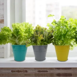 This 15in hanging metal mustard planter is ideal for fences, balconies, walls, and railings. Its powder coated steel design means it is made to last.