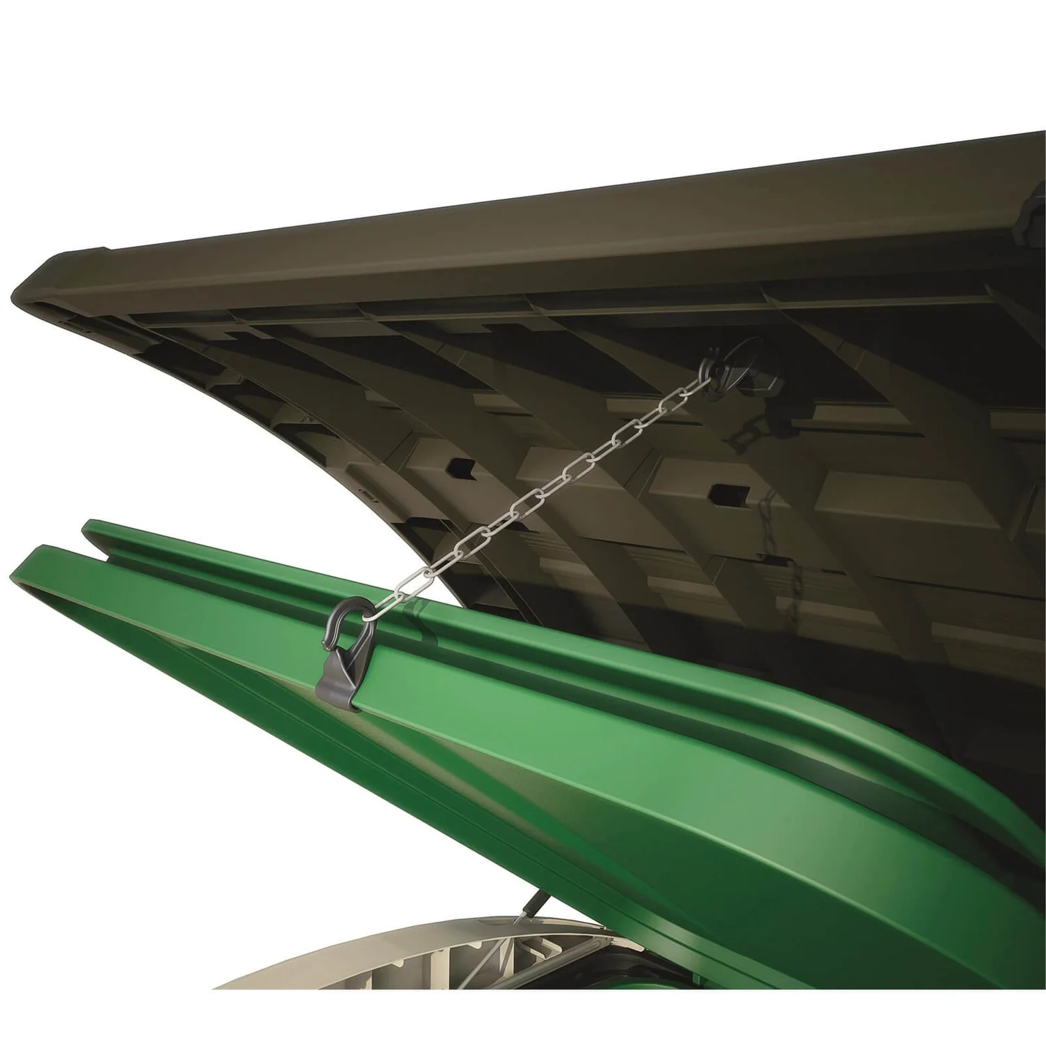 The global best-seller, Store-It-Out Ultra, is a convenient storage unit with a 2000 litre capacity. It has a durable, weather-resistant build that keeps items ventilated and dry. It is versatile and ideal for storing everything from two 360 litre rubbish bins, to barbecues, furniture, bikes or pool pumps. It has a sloped threshold, making it easy to roll items in or out.