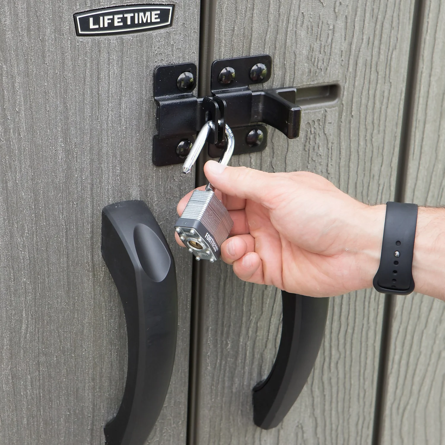 Decluttering your garage and maintaining your yard can be a challenging task. Whether you need a space for yard tools or other equipment, you need the right solution to keep everything organized. Lifetime’s Rough Cut™ Vertical Shed offers an excellent space to store a variety of items around your home. The Rough Cut™ finish features a wood grain texture that provides the natural look and feel of wood without the maintenance of painting or staining. It is also UV-protected and weather resistant. The shed frees up valuable space in your garage by providing plenty of room for bigger items like rakes, brooms, shovels, storage totes, bins and even most push mowers. The durable, impact-resistant build, steel-reinforced walls, and lockable doors (lock not included) provide plenty of protection for your belongings. With the Lifetime Vertical Shed, you can keep your yard looking organized and pristine.