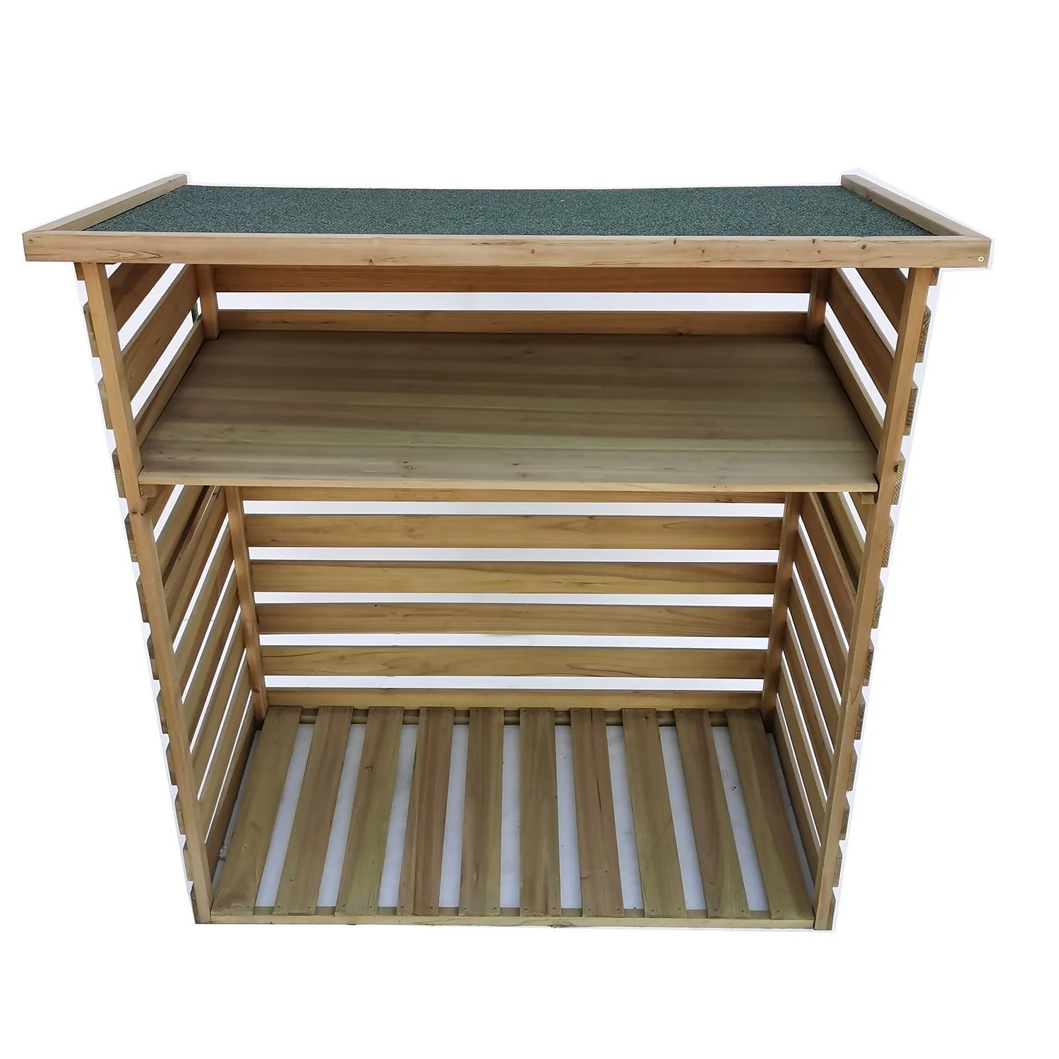 - Slatted design to ensure logs are aired